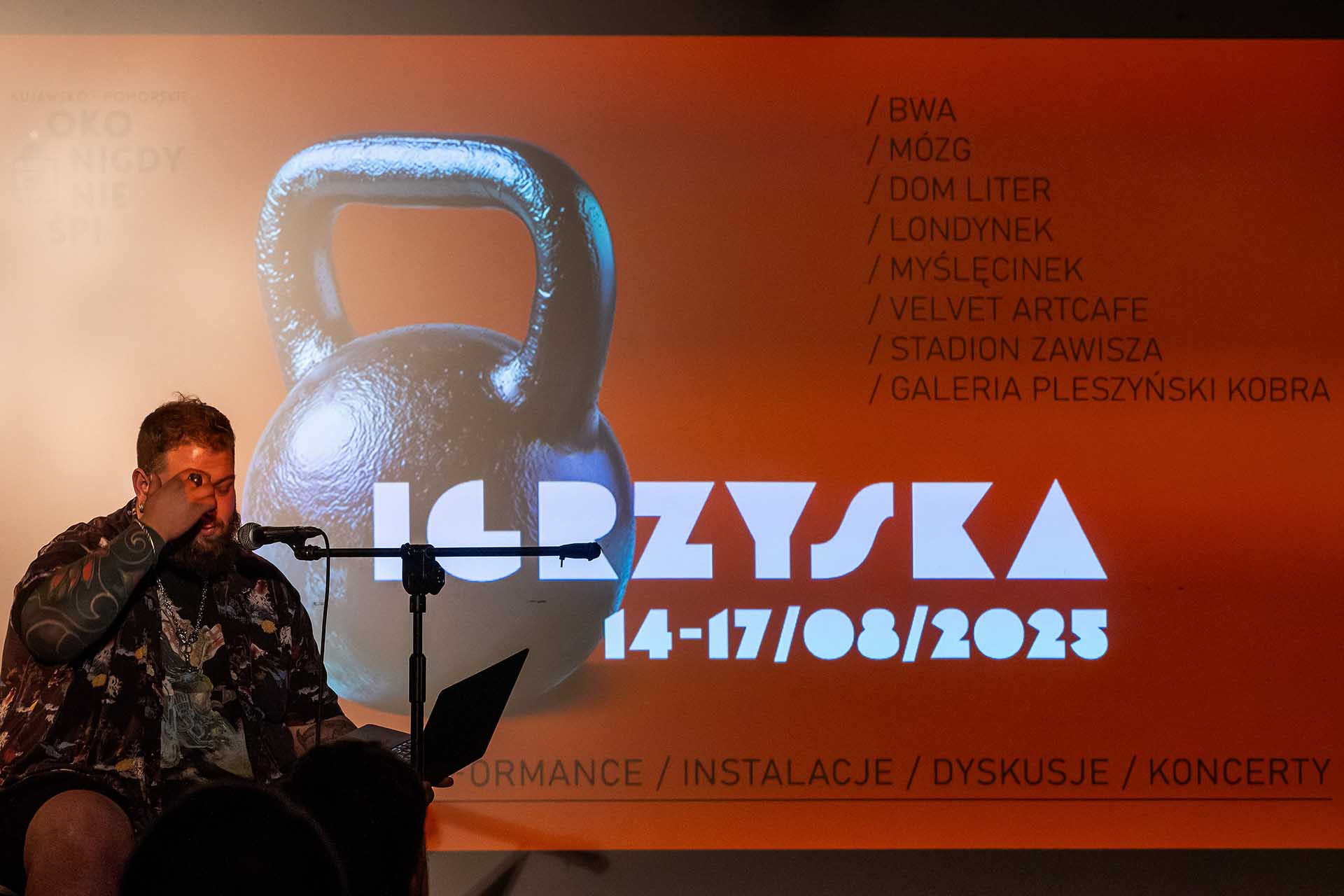 W sierpniu 2025 roku Bydgoszcz ponownie stanie się epicentrum artystycznego fermentu – ale tym razem z nieoczywistą topografią. Dwunasta edycja międzynarodowego festiwalu Oko Nigdy Nie Śpi Kujawsko-Pomorskie, odbywająca się pod hasłem IGRZYSKA, wprowadza sztukę na murawę stadionu, do sali bokserskiej, do lasu, kawiarni i klubów – redefiniując znaczenia przestrzeni publicznych i prywatnych, artystycznych i sportowych, ciała i ducha.