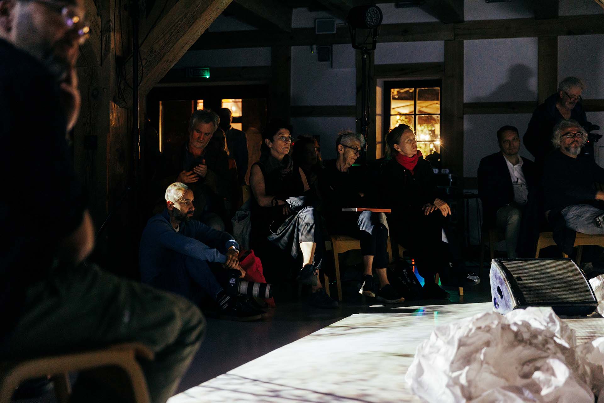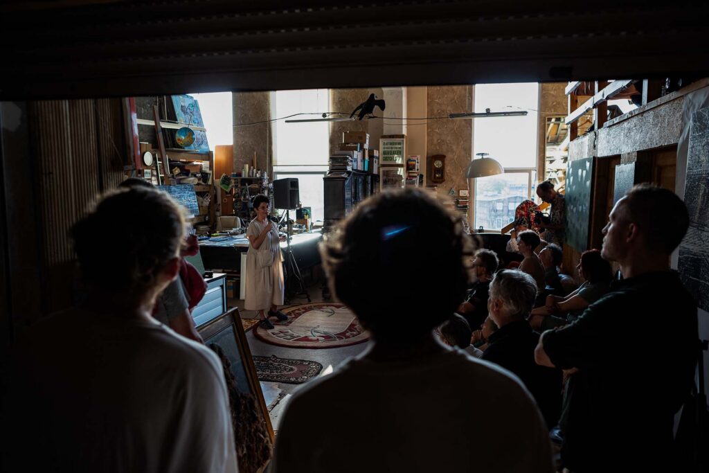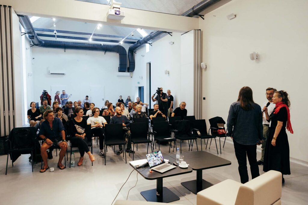 Marta Filipiak (Dyrektorka Festiwalu): „Będziemy w transowej atmosferze, bo hasłem jest trans. Mam przyjemność otworzyć festiwal i wystawę Wojtka Radtke We the Water / My Woda. Ale zanim powiemy więcej, chciałabym poprosić dyrektorkę galerii BWA w Bydgoszczy, Karolinę Leśnik-Patelczyk, która jak co roku udostępnia nam przestrzeń galerii, za co bardzo dziękujemy”.