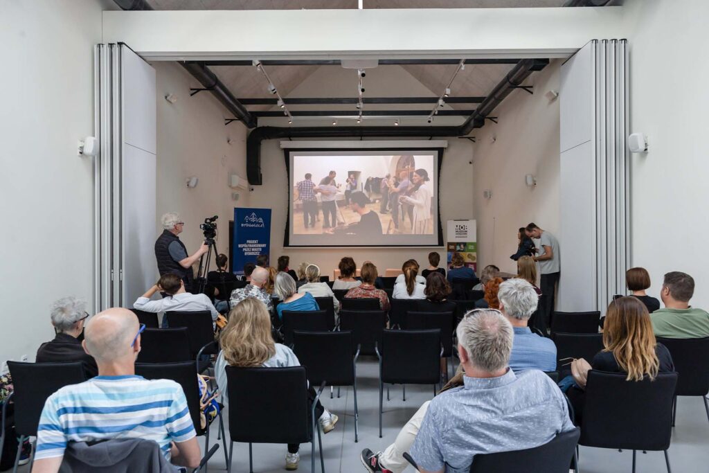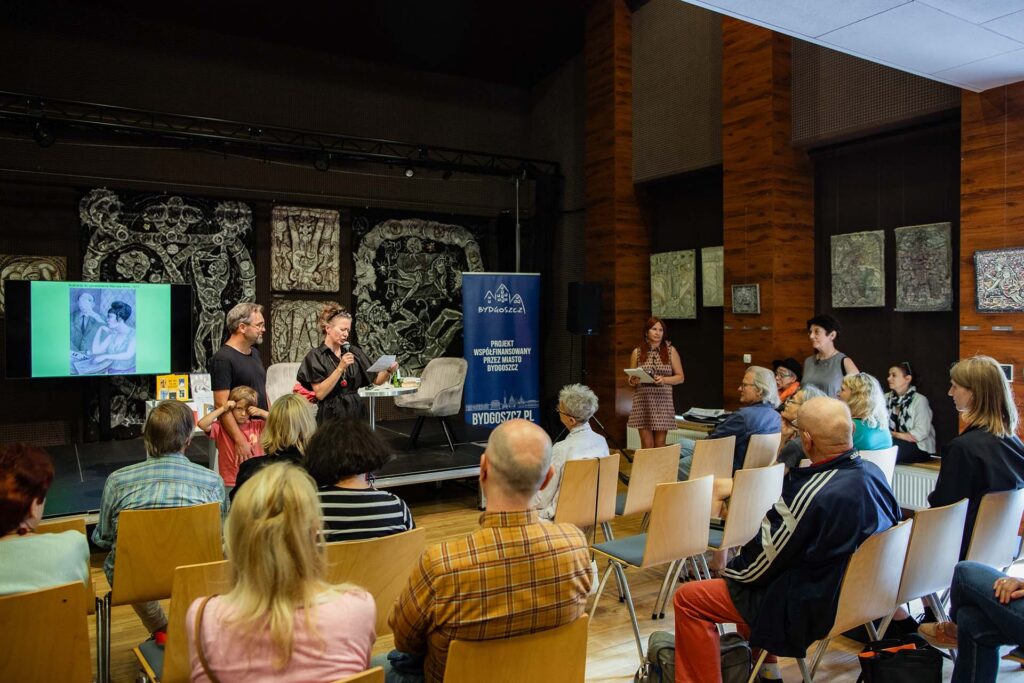 Marta Filipiak (na zakończenie): „Nasze Oko powstaje dzięki wsparciu partnerów: województwa kujawsko-pomorskiego oraz miasta Bydgoszcz, za co bardzo dziękujemy. Zapraszam na wystawę!”.