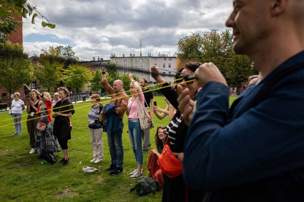Karolina Leśnik-Patelczyk (Dyrektorka Galerii Miejskiej BWA): „Witam wszystkich artystów i odbiorców – państwo są najwierniejszą publicznością, co roku spotykamy te same twarze, a koło entuzjazmu się powiększa. To ósma edycja Oka, w której uczestniczę. Robiliśmy różne projekty: od wystawy Joanny Rajkowskiej, po prace Topora, Roberta Kuśmirowskiego czy Marka Chlandy. Moja historia z festiwalem zaczęła się w 2016 roku od niefortunnej wyprawy do Lubostronia podczas burzy, gdzie w busie poznałam panią Krysię Bulert, która nakreśliła mi obraz bydgoskiej kultury. Cieszę się, że w tym roku mamy wystawę Wojtka Radtke oraz ekspozycję Medycyna kolekcji z udziałem zbiorów rodziny Szmytów. Dziękuję panu Tomkowi Zielińskiemu, który od lat stoi na wysokości zadania”.