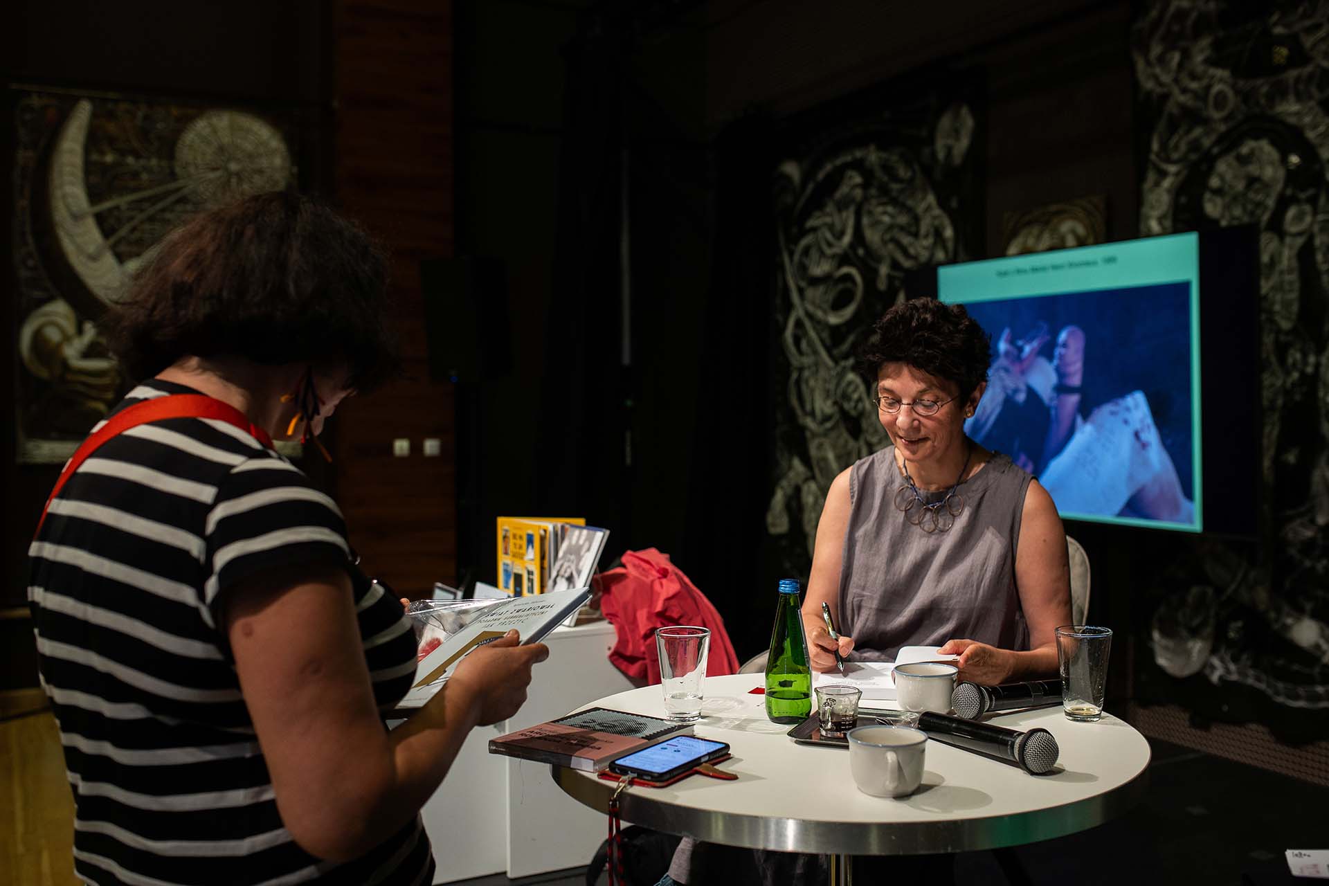 Anda Rottenberg: „Przyjeżdżam tu za każdym razem, bo czar tego stowarzyszenia jest nieodparty; zakochałam się w Karłach po obejrzeniu opery o Phoebe Hicks w Ostromecku. Temat ‚trans‘ rzuciłam Marcie, a ona go od razu chwyciła. Mnie pociągnęło w tym pojęciu coś innego niż transformacja czy transgresja – zajmuję się ostatnio transpłciowością, która jest w naszym kraju źle widziana. Zainteresowałam się tym w Luwrze, patrząc na rzeźbę Berniniego Androgyn. Pisałam też o świętej Wilgefortis, która urodziła się chłopcem, ale urosły jej piersi. W antyku osoby transpłciowe były czczone. Pojęcie trans jest uniwersalne i pojemne, dziękuję za przyjęcie tego tematu”.