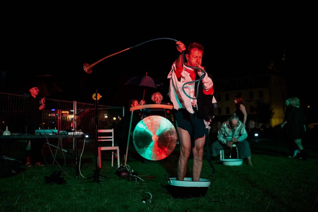 Robert Kuśmirowski (Kurator): „Mam szczęście spotykać znamienite osoby, które dają mi nadzieję, że trud krzątania się wokół sztuki ma sens. Dostałem do dyspozycji całą Bydgoszcz – od Młynów Rothera po Exploseum. Przedstawiam państwu Wojtka Radtke, który jako badacz-naukowiec zabrał się za temat wody. Udowodnił, że woda ma wiele dróg i struktur – od modernistycznych po neogotyckie. Sam dźwięk przepuszczany przez wodę stawia ją w innym układzie. Oddaję mu głos”.