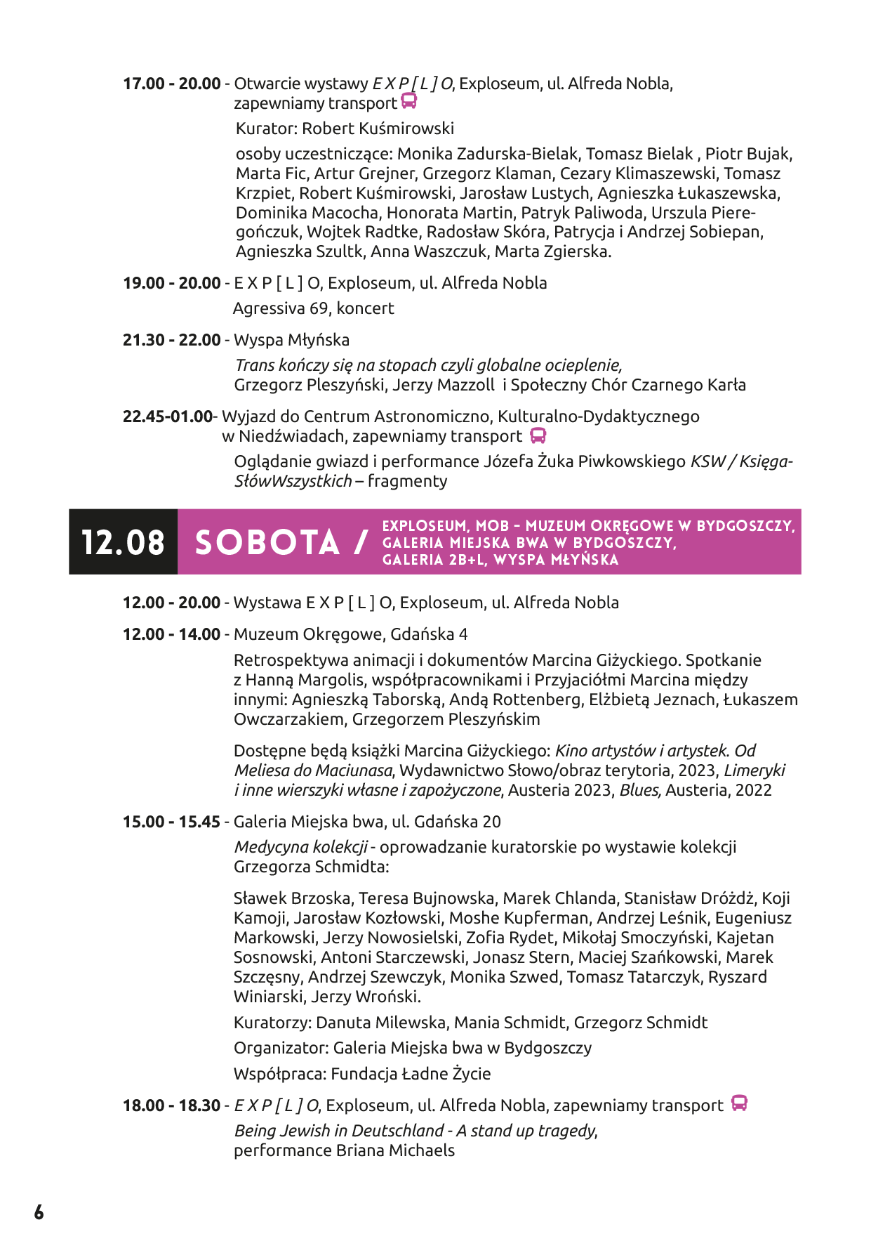 - Grzegorz Pleszyński – pokaz filmu Niedokończone życie Phoebe Hicks oraz występ Trans kończy się na stopach czyli globalne ocieplenie.